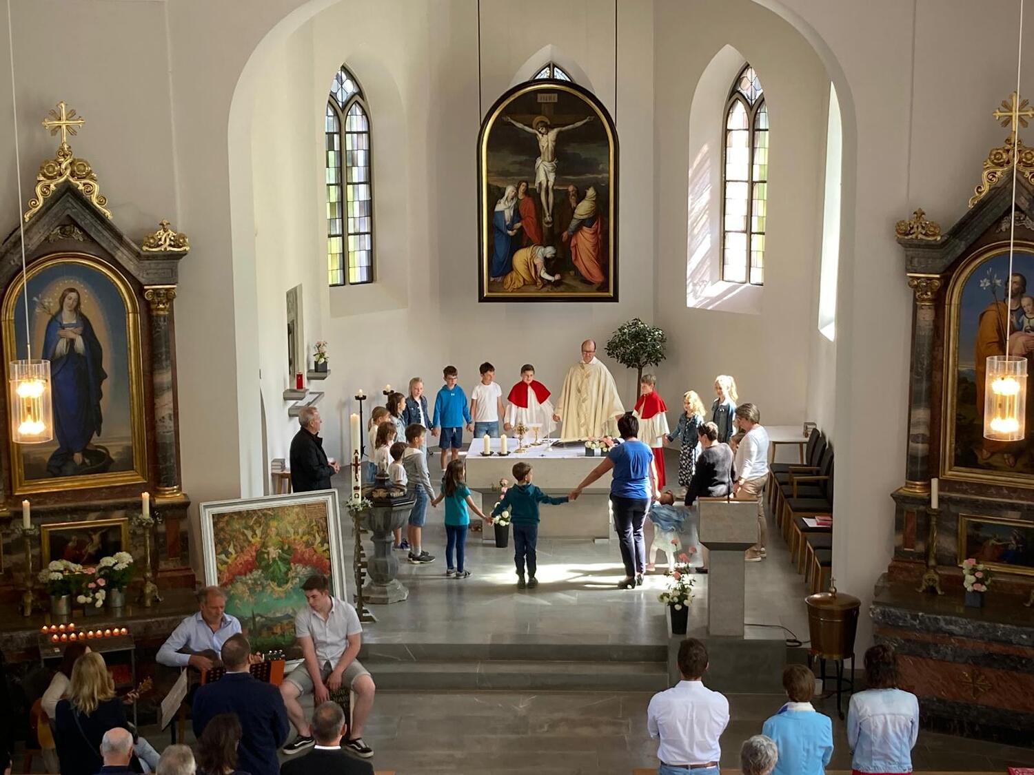 Der Gottesdienst am Muttertag, dem 12.05.2024, wurde erstmals vom Familienchor musikalisch mitgestaltet. Wir möchten uns bei den Initiatoren der Singgemeinschaft „Viva la Musica“ und vor allem bei allen kleinen und großen Sängerinnen und Sängern sowie Musikantinnen und Musikanten bedanken! Es war eine tolle Probe in feinem Rahmen sowie eine stimmungsvolle Messfeier.